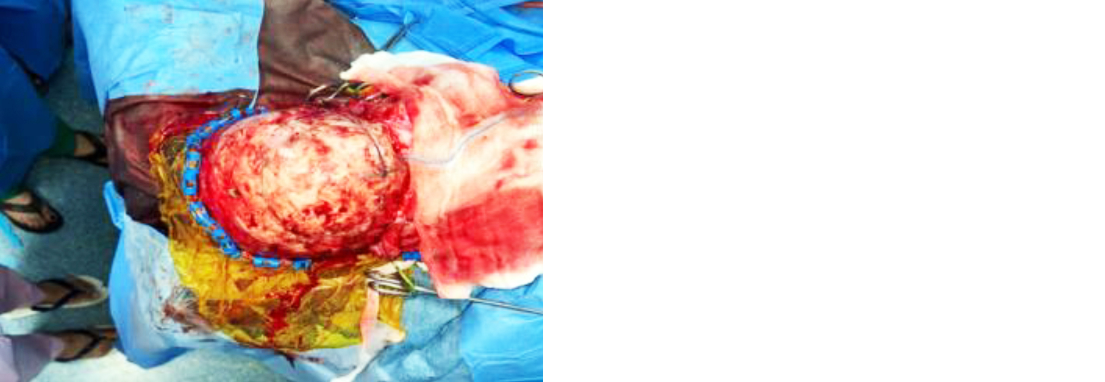Figure 2: Intraoperative picture of a fronto-orbital advancement where the cranial vault is exposed through a bicoronal incision and flap elevation of the scalp. The surgical field is prepared for osteotomies and reshaping.