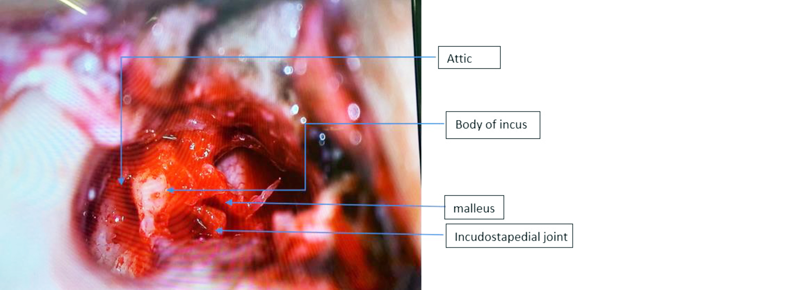 The present prospective study was conducted in the Department of Otorhinolaryngology and Head Neck Surgery, Government Medical College and Hospital, Jammu from October 2020 to August 2022. It was a comparative study. The study included 100 patients, of either sex, between 10- 50 years of age, having evidence of unilateral or bilateral attico-antral (squamosal disease) disease or cholesteatoma in the middle ear cleft, and those with good cochlear reserve. Patients with sensorineural deafness, systemic diseases (Hypertension, Diabetes Mellitus), having any active infection in the nose, throat and paranasal sinuses, or otogenic intra-cranial complications were excluded. The study was approved by institutional ethical committee. The informed written consent was obtained from all the patients or their legal guardian in case of patient being less than 18 years.