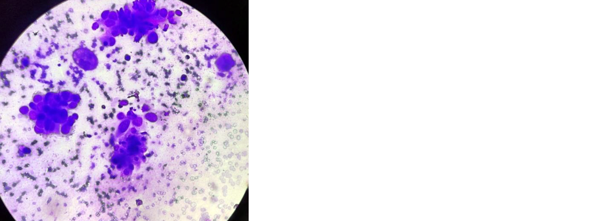 Figure 5: Mucoepidermoid carcinoma (100x magnification , Giemsa stain).