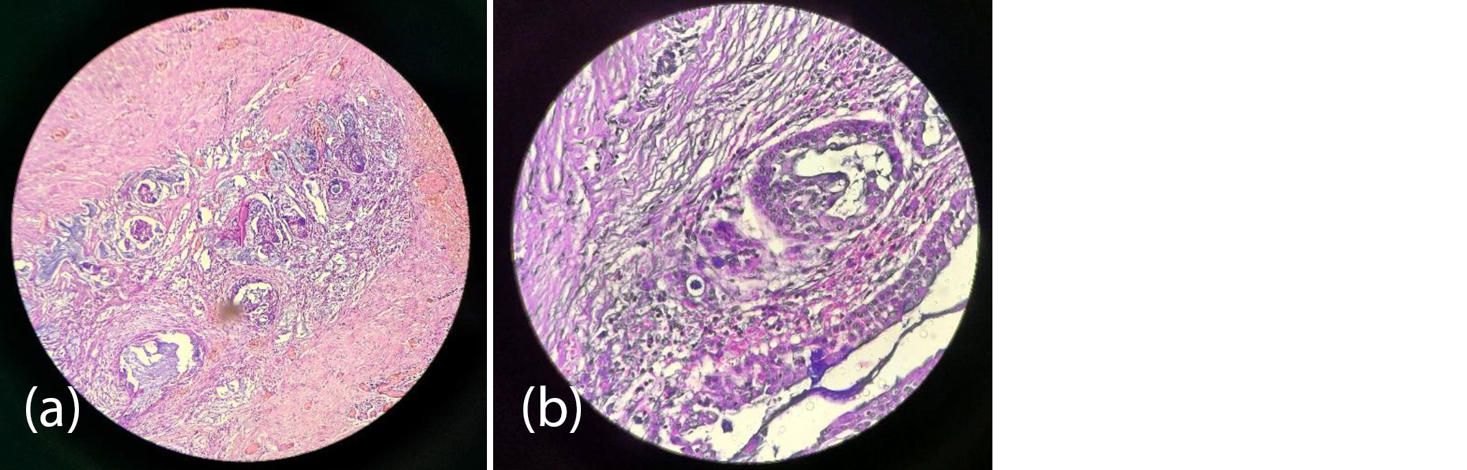 Figure 6a & 6b: Mucoepidermoid carcinoma (10x and 40x magnification, H&E stain).