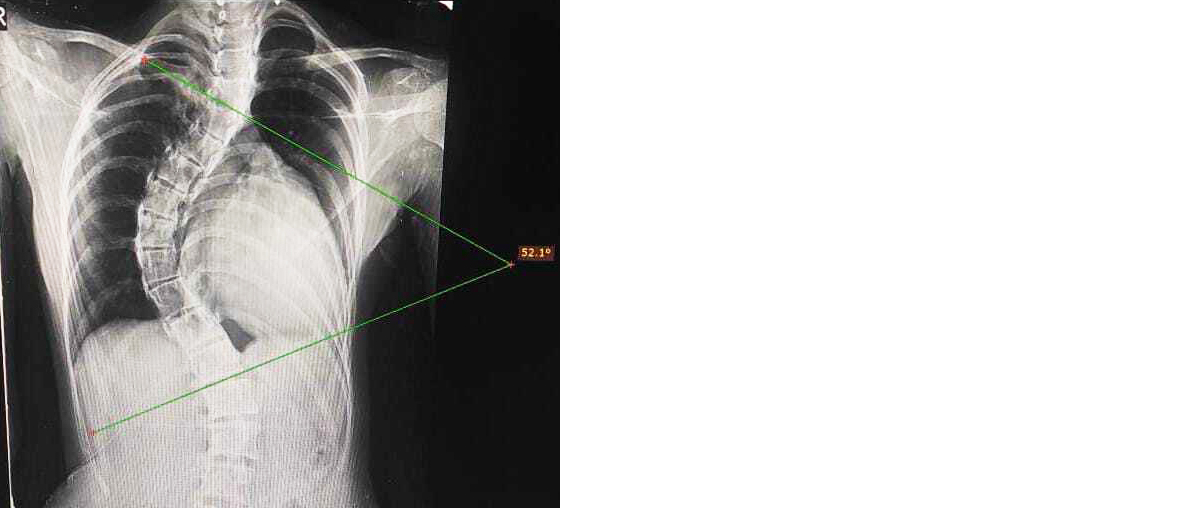 Figure 1: Chest X-ray (PA view) showing scoliosis with measurement of Cobb’s angle.