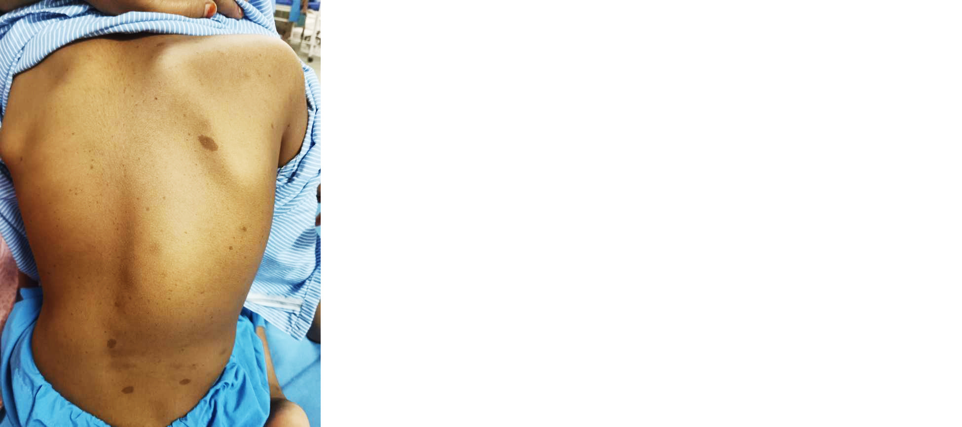 Figure 3: Multiple café-au-lait spots and spinal plexiform neurofibroma.