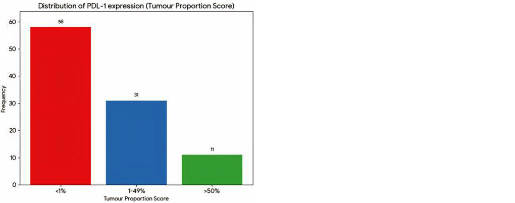 Limitations: This study has several limitations. The single-center design and relatively small sample size may limit the generalizability of the findings. As a cross-sectional study, it provides only a snapshot of PD-L1 expression without longitudinal follow-up to assess treatment response or survival outcomes. Additionally, molecular profiling for key driver mutations such as EGFR and ALK was not included, which may have provided a more comprehensive understanding of the biomarker landscape in this cohort.